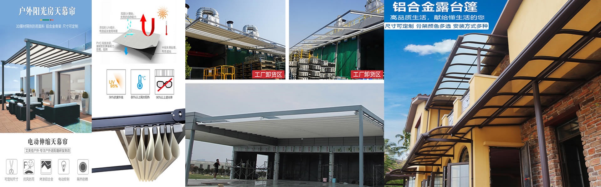 推拉雨篷、伸縮雨篷、電動篷房、鋁合金雨蓬、遮陽雨篷等優質系列產品, 根據不同的